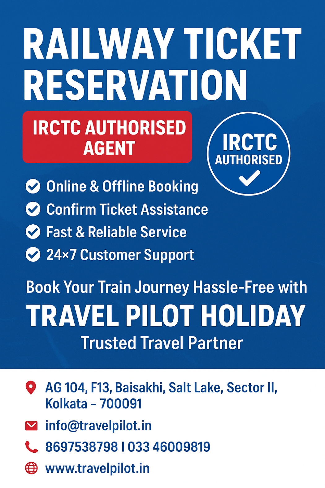 Book your next jouey with confidence through Travel Pilot Holiday – your trusted railway ticket booking partner in Kolkata.
