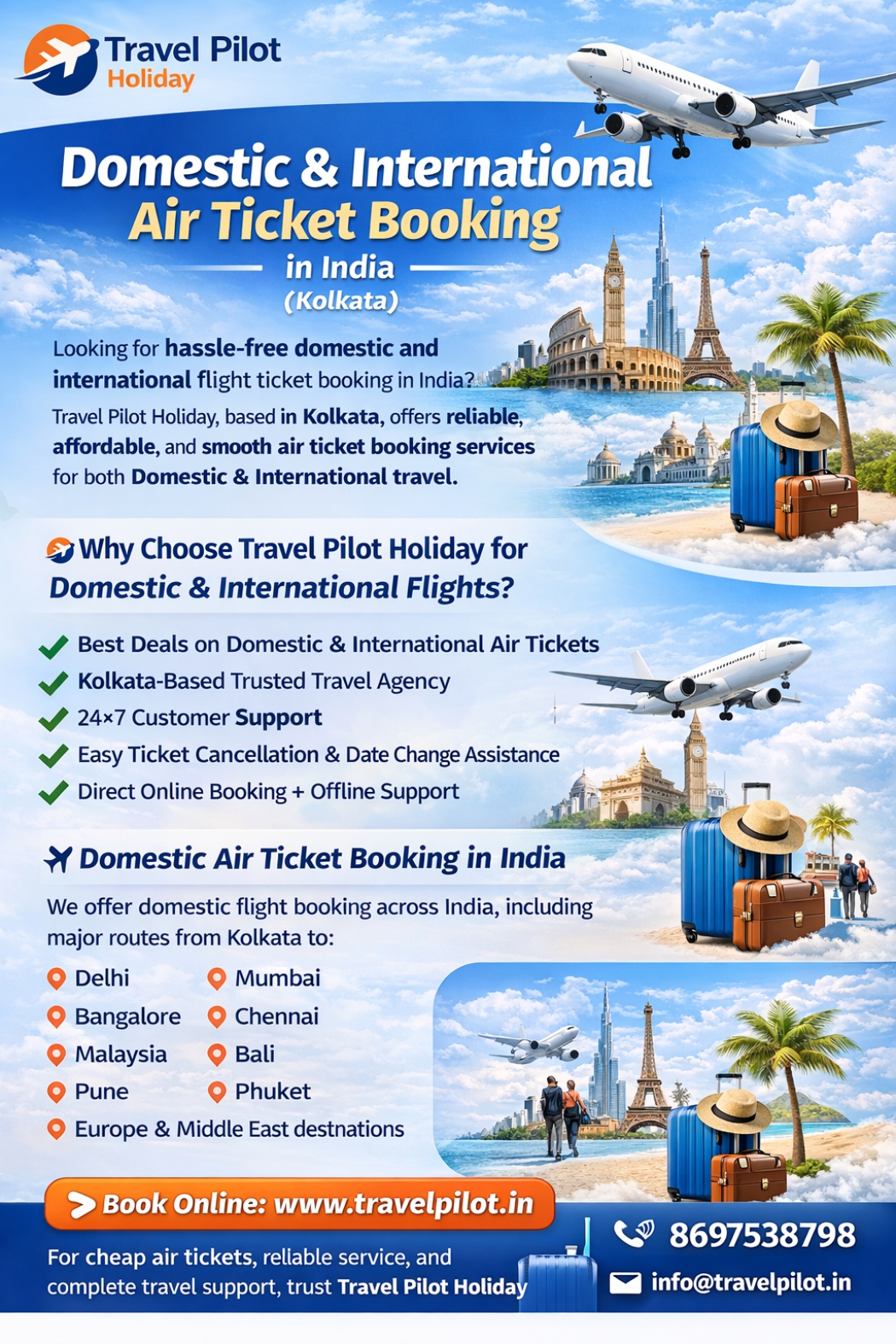 ✈️ Best Domestic & Inteational Air Ticket Booking in India – Travel Pilot Holiday (Kolkata)